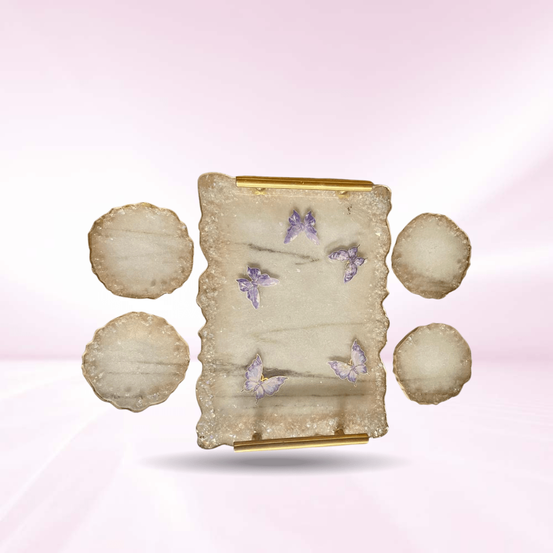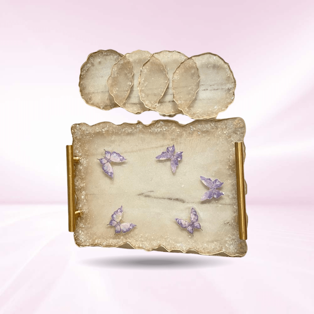 Beige butterfly Resin Tray – A Touch of Sophistication