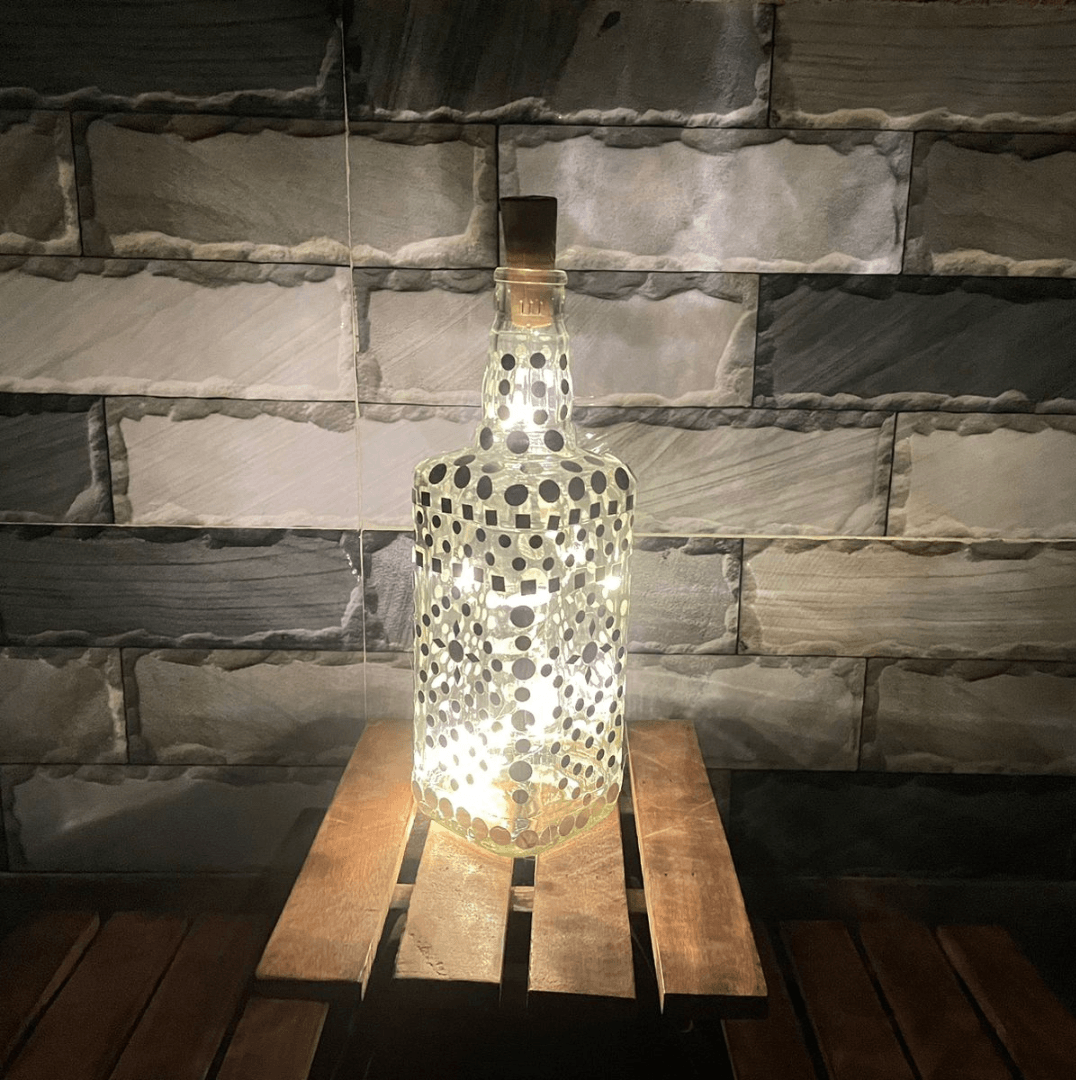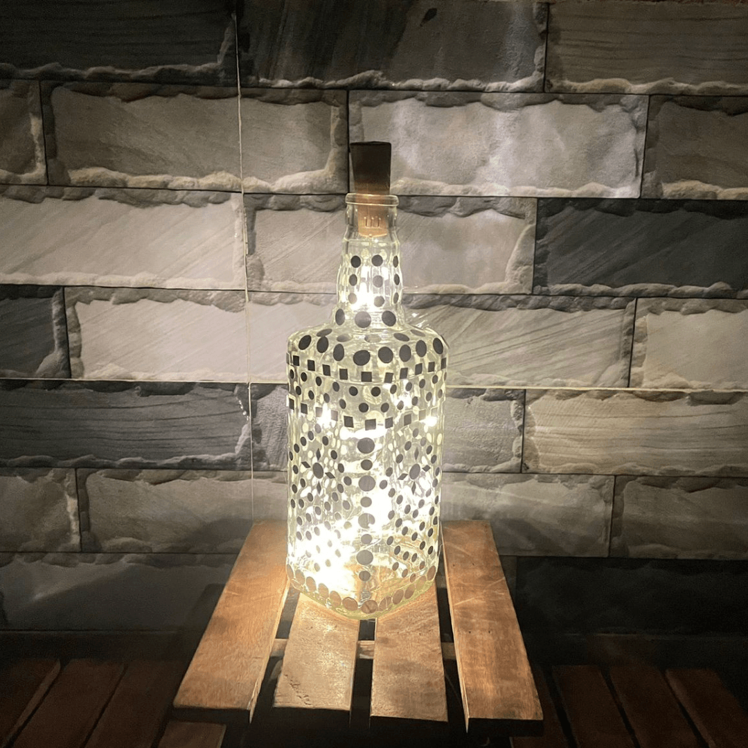 Add a touch of elegance and sparkle to your home decor with our unique Bottle Art with Mirror Stickers and Lights.