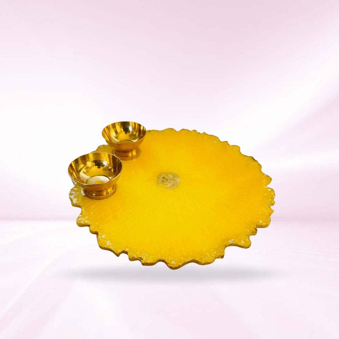 Yellow Resin Pooja Thali with OM